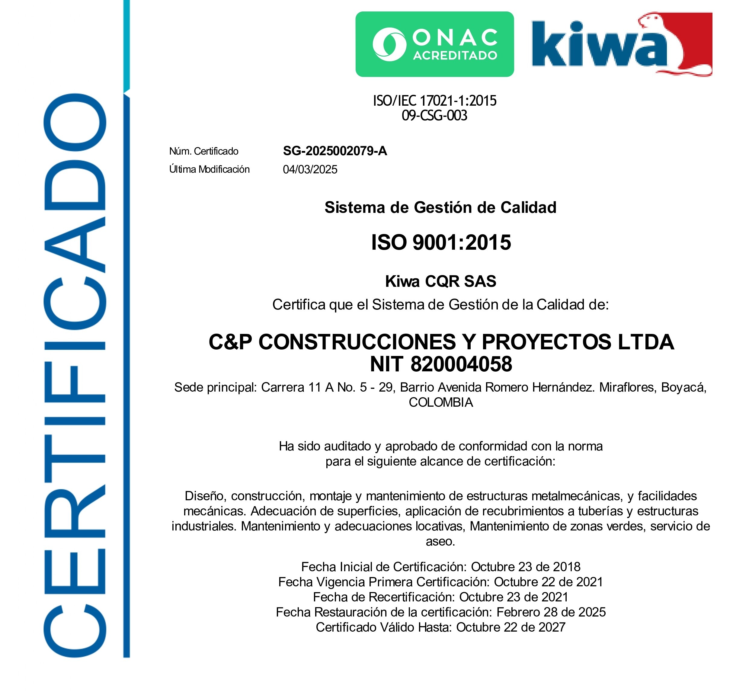Sistema de Gestión de Calidad ISO 9001:2015